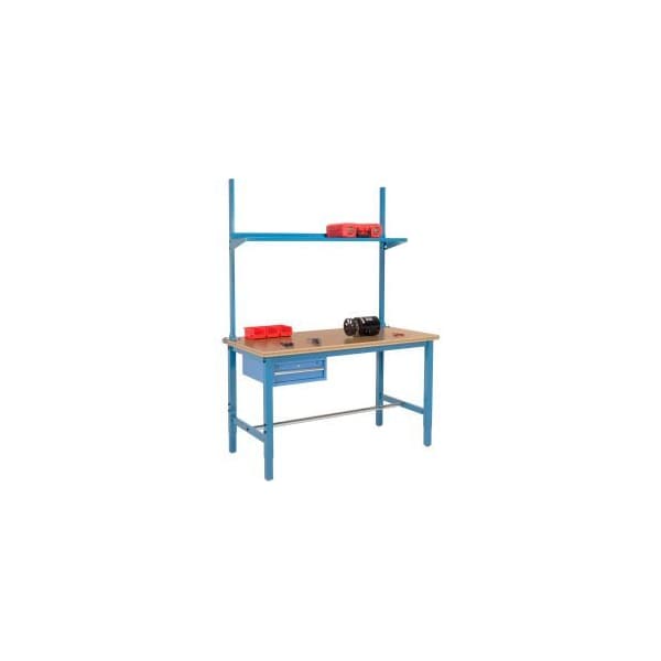 72x30 Production Workbench Shop Top Square Edge - Drawer, Upright Shelf BL