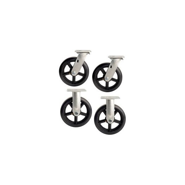 8" x 2" Mold-On Rubber Caster Kit 2 Swivel, 2 Rigid