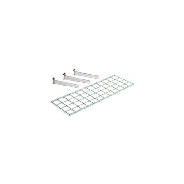 STEEL SLATWALL WIRE SHELF WITH BRACKETS STEEL WIRE SHELF EASILY INSTALLS ON SLATWALL PANELS WITH THREE CHROME PLATED STEEL BRACKETS. GRAY EPOXY COATED FINISH SHELF. SOLD IN PACKAGES OF 2.