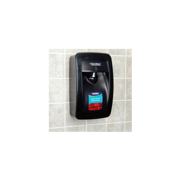 HAND SOAP STARTER KIT W/ FREE AUTOMATIC DISPENSER - BLACK HAND SOAP STARTER KIT. IS IDEAL FOR USE IN OFFICES, SCHOOLS, WAREHOUSES, FOOD SERVICE FACILITIES, MANUFACTURING, AND MORE. AUTOMATIC PLASTIC DISPENSER. HAS LARGE SITE WINDOW ALLOWS FOR EASY REFILL, AND CAN BE USED TO DISPLAY EASY-TO-SLIDE PRODUCT IDENTIFICATION WINDOW CARDS (INCLUDED). TOP DISPENSING TECHNOLOGY REDUCES RISK OF LEAKING VALVES. AUTOMATIC, HANDS FREE OPERATION FOR IMPROVED HAND HYGIENE. QUIET, POWERFUL BATTERY-OPERATED DISPENSER USES FOUR C BATTERIES (INCLUDED) FOR LONGER LIFE. HIGH 1250ML CAPACITY DISPENSER HELPS REDUCE MAINTENANCE, AND DISPENSES ONLY 0.75ML PER ACTIVATION TO REDUCE WASTE. SENOR TURNS GREEN WHEN DISPENSING, AND RED WHEN BATTERIES ARE LOW. BATTERY-SAVING SLEEP MODE AFTER 30 MINUTES OF NON-USE. ADA COMPLIANT WITH A SECURED LOCKING OPTION. BLACK COLOR FINISH. LUXURY HAND SOAP. FEATURES A RICH, SOFT FOAM AND PLEASANT TROPICAL SCENT THAT QUICKLY CLEANS AWAY LIGHT TO MEDIUM SOILS, MAKING IT IDEAL FOR ANY ENVIRONMENT. CONTAINS ALOE AND VITAMIN E TO HELP NOURISH THE SKIN. GREEN SEAL CERTIFIED AND USDA BIOPREFERRED®. PINK COLOR. STARTER KIT INCLUDES ONE MANUAL DISPENSER AND CASE OF 6 HAND SOAP REFILLS. NOTE ON REFILL INSTALLATION: PLACE BOTTOM OF THE REFILL POUCH IN THE DISPENSER FIRST, ENSURING THAT THE ENTIRE POUCH IS TUCKED INTO THE DISPENSER, THEN SNAP THE NOZZLE INTO THE COLLAR AND CLOSE THE COVER.