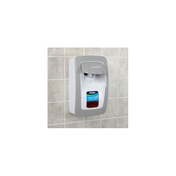 HAND SOAP STARTER KIT W/ FREE DISPENSER - WHITE/GRAY HAND SOAP STARTER KIT. IS IDEAL FOR USE IN OFFICES, SCHOOLS, WAREHOUSES, FOOD SERVICE FACILITIES, MANUFACTURING, AND MORE. MANUAL PLASTIC DISPENSER. WITH NO METAL PARTS, MAKING IT IDEAL FOR WET OR DRY CONDITIONS. LARGE SITE WINDOW ALLOWS FOR EASY REFILL, AND CAN BE USED TO DISPLAY EASY-TO-SLIDE PRODUCT IDENTIFICATION WINDOW CARDS (INCLUDED). TOP DISPENSING TECHNOLOGY REDUCES RISK OF LEAKING VALVES. ERGONOMIC PUSH PAD. HIGH 1250ML CAPACITY DISPENSER HELPS REDUCE MAINTENANCE, AND DISPENSES ONLY 0.75ML PER ACTIVATION TO REDUCE WASTE. ADA COMPLIANT WITH A SECURED LOCKING OPTION. WHITE/GRAY COLOR FINISH. LUXURY HAND SOAP. FEATURES A RICH, SOFT FOAM AND PLEASANT TROPICAL SCENT THAT QUICKLY CLEANS AWAY LIGHT TO MEDIUM SOILS, MAKING IT IDEAL FOR ANY ENVIRONMENT. CONTAINS ALOE AND VITAMIN E TO HELP NOURISH THE SKIN. GREEN SEAL CERTIFIED AND USDA BIOPREFERRED®. PINK COLOR. STARTER KIT INCLUDES ONE MANUAL DISPENSER AND CASE OF 6 HAND SOAP REFILLS. NOTE ON REFILL INSTALLATION: PLACE BOTTOM OF THE REFILL POUCH IN THE DISPENSER FIRST, ENSURING THAT THE ENTIRE POUCH IS TUCKED INTO THE DISPENSER, THEN SNAP THE NOZZLE INTO THE COLLAR AND CLOSE THE COVER.