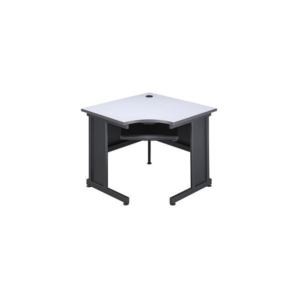 INTERION® OFFICE PARTITION FURNITURE CURVED CORNER DESK INTERION® BY GEC OFFICE PARTITION FURNITURE HELPS OPTIMIZE YOUR PARTITIONED WORK SPACE, WHILE ADDING FUNCTIONALITY AND STORAGE. THESE MODULAR COMPONENTS ARE MADE WITH 1 THICK SCRATCH RESISTANT LAMINATE WORK SURFACES ON BLACK FINISHED STEEL FRAME. CORNER DESK HAS A CURVED FRONT THAT IS IDEAL FOR COMFORT IN CORNER PLACEMENT APPLICATIONS. DESKTOPS INCLUDE 2-3/16" DIAMETER CABLE MANAGEMENT GROMMET OPENING(S). DESK INCLUDES MODESTY PANEL AND ADJUSTABLE LEVELING GLIDES. PURCHASE WITH OPTIONAL BRIDGE, RETURN OR PENINSULA TO CREATE L & U-SHAPED WORKSTATION. EASY ASSEMBLY.