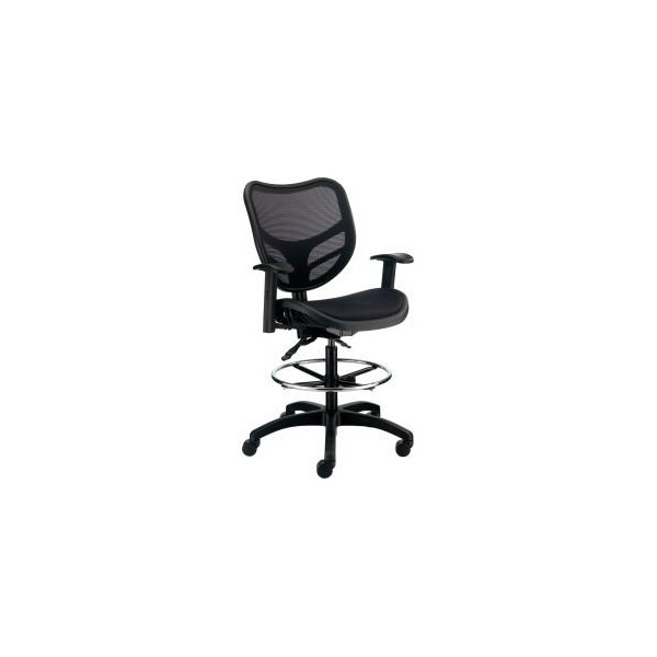 INTERION® BY GEC ALL MESH STOOL WITH ARMS - BLACK HEAVY DUTY TASK STOOL FEATURES A FULL MESH DESIGN, PROVIDING COMFORT AND BREATHABILITY FOR YOUR BACK AND LEGS. 5 ADJUSTMENTS ARE FEATURED, ALLOWING THE STOOL TO BE CONTOURED TO EACH USER'S NEEDS: ADJUSTABLE HEIGHT ARMS, SEAT HEIGHT, SEAT TILT, BACK TILT WITH TILT LOCK AND FOOT RING HEIGHT. BUILT IN LUMBAR SUPPORT PROVIDES STABILITY FOR YOUR BACK.