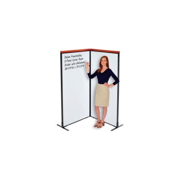 Interion Deluxe Freestanding 2-Panel Corner Room Divider with Whiteboard, 36-1/4"W x 73-1/2"H