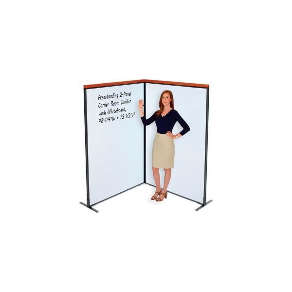 Interion Deluxe Freestanding 2-Panel Corner Room Divider with Whiteboard, 48-1/4"W x 73-1/2"H