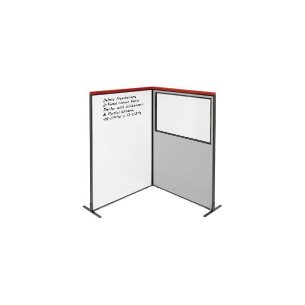 Interion Deluxe Freestanding 2-Panel Corner w/Whiteboard Partial Window 48-1/4Wx73-1/2H Gray