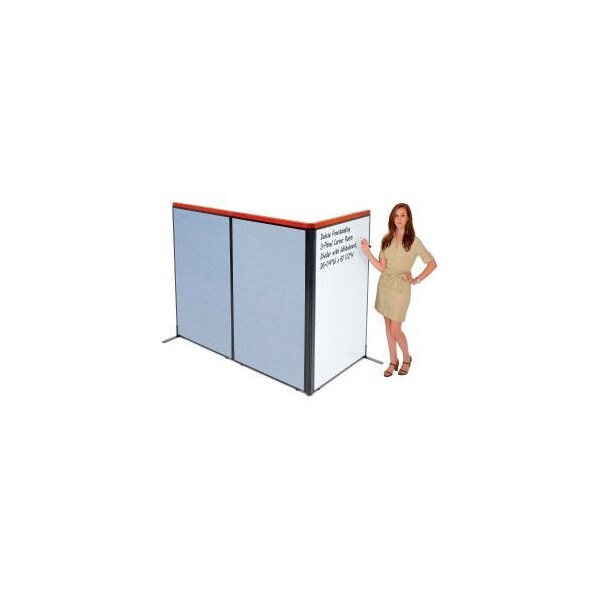 DELUXE FREESTANDING 3-PANEL CORNER ROOM DIVIDER WITH WHITEBOARD, 74-1/4"W X 61-1/2"H, BLUE SECTION YOUR OFFICE SPACE WITH INTERION® BY GEC PARTITION PANELS. WHETHER YOU NEED TO CONTAIN NOISE, ENCLOSE AN OFFICE DESK OR BLOCK OFF A COPY MACHINE, THESE ROOM DIVIDERS WILL MAKE IT EASY AND AFFORDABLE. OFFICE PARTITION PANELS WITH WHITEBOARD CAN BE USED IN CONJUNCTION WITH OTHER INTERION® PANELS TO WRAP AROUND EXISTING DESKS AND OFFICE FURNITURE TO CREATE PRIVATE OFFICE SPACES FOR ANY OFFICE ENVIRONMENT. 1-3/4" THICK PANEL FEATURES FULL PAINTED METAL MAGNETIC WHITEBOARDS ON BOTH SIDES TO ALLOW YOU TO ADD WRITING SPACE ON ANY CUBICLE WALL. PANEL TRIM IS FINISHED WITH SELF-EXTINGUISHING EXTRUDED POLYMER THAT OFFERS OPTIMUM SAFETY AND RIGIDITY. INCLUDES 2 FABRIC PANELS AND 1 WHITEBOARD PANEL, STEEL T-LEGS FOR STABILITY AND ALL THE NECESSARY HARDWARE TO CREATE A 90 DEGREE CORNER CONFIGURATION. DELUXE VERSIONS INCLUDE A WOOD CAP IN CHERRY FINISH TO ELEVATE YOUR OFFICE LOOK.
