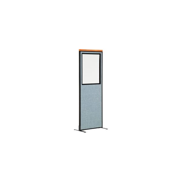 Interion Deluxe Freestanding Office Partition Panel w/Partial Window 24-1/4"W x 97-1/2"H Blue