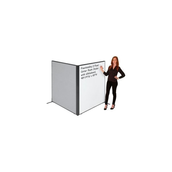 Interion Freestanding 2-Panel Corner Room Divider with Whiteboard, 48-1/4"W x 60"H, Gray