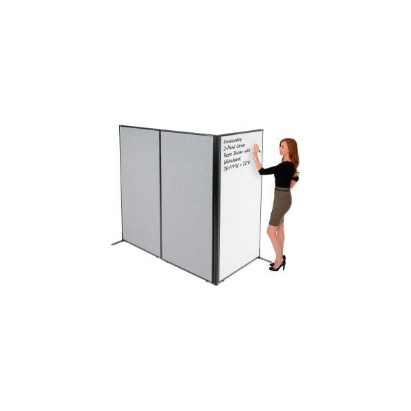 Interion Freestanding 3-Panel Corner Room Divider with Whiteboard, 36-1/4"W x 72"H, Gray