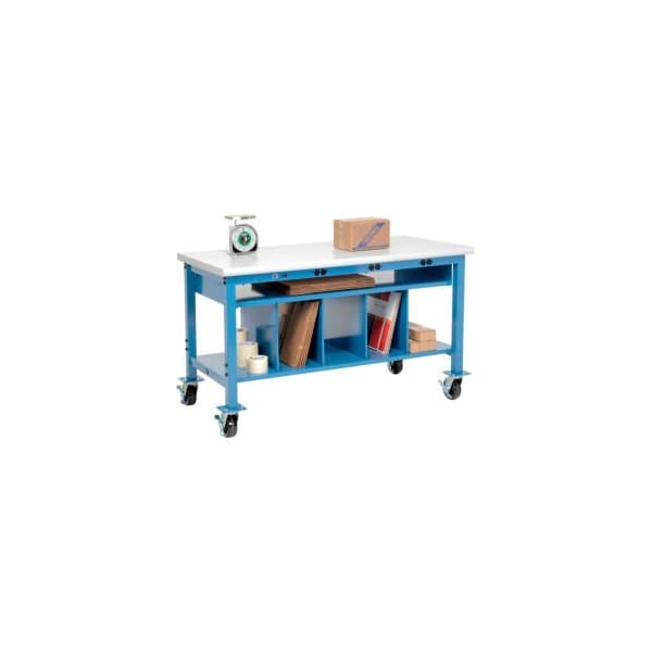 Mobile Packing Workbench W/Shelf Power, Laminate Safety Edge, 72"W x 30"D