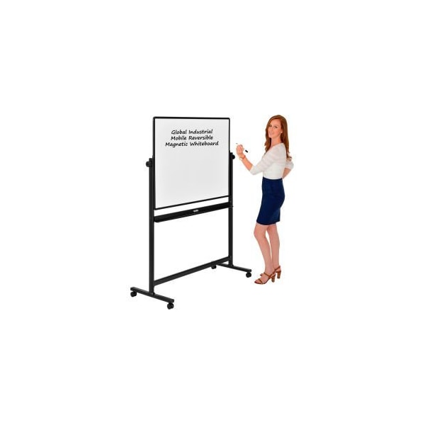 Mobile Reversible Whiteboard - 48 x 36 - Steel - Black Frame