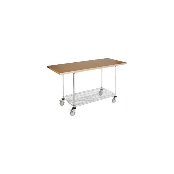 Mobile Workbench w/ Shop Top Square Edge Wire Rack, 72"W x 30"D, Chrome