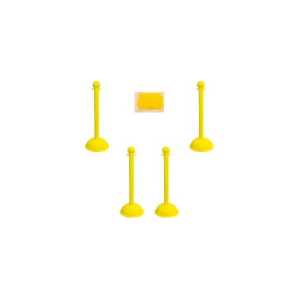 Mr. Chain Heavy Duty Plastic Stanchion Kit With 2"x50'L Chain, 41"H, Yellow, 4 Pack
