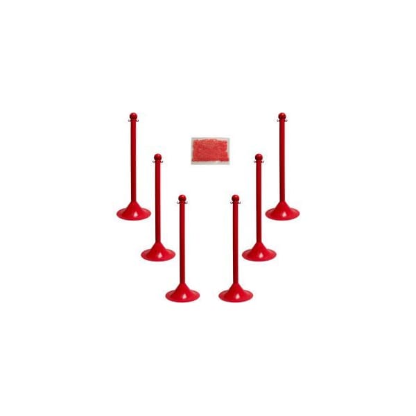 Mr. Chain Light Duty Plastic Stanchion Kit With 2"x50'L Chain, 41"H, Red, 6 Pack