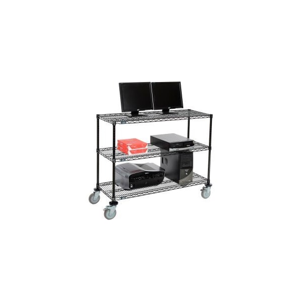 Nexel 3-Shelf Mobile Wire Computer LAN Workstation, 48"W x 18"D x 40"H, Black