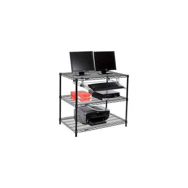 Nexel 3-Shelf Wire Computer LAN Workstation with Keyboard Tray, 36"W x 24"D x 34"H, Black