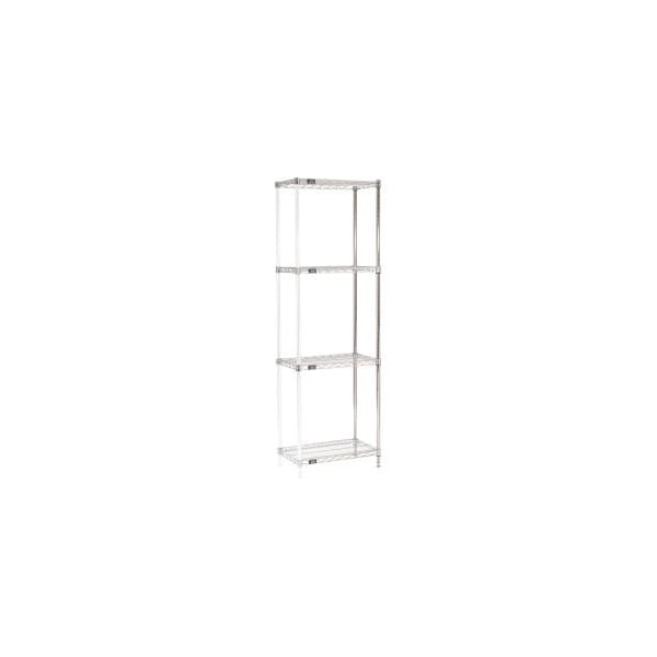 NEXEL® CHROME WIRE SHELVING ADD-ON - 24"W X 14"D X 86"H ADD-ON SHELVING UNITS ALLOW UNIT EXPANSION TO MAKE THE MOST OF STORAGE SPACE. INCLUDES 2 POSTS WITH LEVELING FEET, 4 SHELVES, SNAP-ON SLEEVES AND S-HOOKS TO JOIN UNITS. CHROME PLATED FINISH IS ATTRACTIVE ENOUGH FOR RETAIL DISPLAY, BUT WITHSTANDS WAREHOUSE CONDITIONS AS WELL. FEATURES: