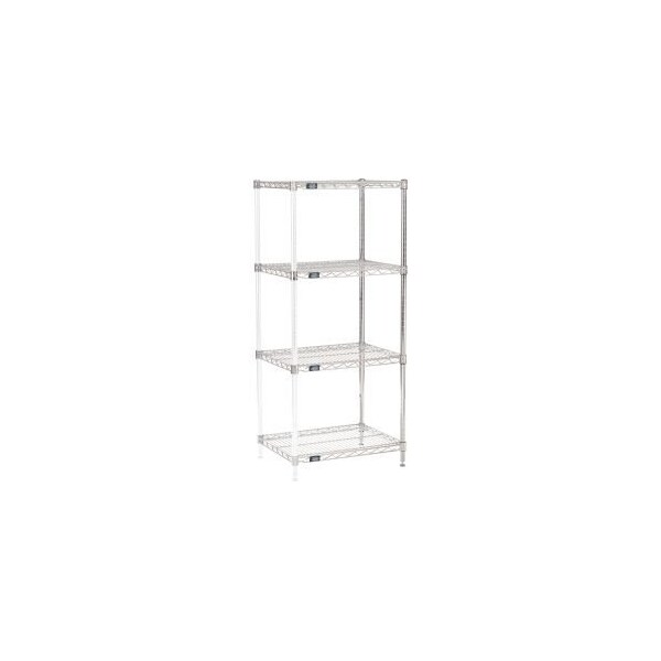 NEXEL® CHROME WIRE SHELVING ADD-ON - 24"W X 18"D X 54"H ADD-ON SHELVING UNITS ALLOW UNIT EXPANSION TO MAKE THE MOST OF STORAGE SPACE. INCLUDES 2 POSTS WITH LEVELING FEET, 4 SHELVES, SNAP-ON SLEEVES AND S-HOOKS TO JOIN UNITS. CHROME PLATED FINISH IS ATTRACTIVE ENOUGH FOR RETAIL DISPLAY, BUT WITHSTANDS WAREHOUSE CONDITIONS AS WELL. FEATURES: