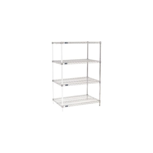 NEXEL® CHROME WIRE SHELVING ADD-ON - 36"W X 24"D X 54"H ADD-ON SHELVING UNITS ALLOW UNIT EXPANSION TO MAKE THE MOST OF STORAGE SPACE. INCLUDES 2 POSTS WITH LEVELING FEET, 4 SHELVES, SNAP-ON SLEEVES AND S-HOOKS TO JOIN UNITS. CHROME PLATED FINISH IS ATTRACTIVE ENOUGH FOR RETAIL DISPLAY, BUT WITHSTANDS WAREHOUSE CONDITIONS AS WELL. FEATURES: