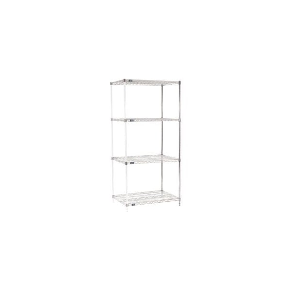NEXEL® CHROME WIRE SHELVING ADD-ON - 36"W X 24"D X 86"H ADD-ON SHELVING UNITS ALLOW UNIT EXPANSION TO MAKE THE MOST OF STORAGE SPACE. INCLUDES 2 POSTS WITH LEVELING FEET, 4 SHELVES, SNAP-ON SLEEVES AND S-HOOKS TO JOIN UNITS. CHROME PLATED FINISH IS ATTRACTIVE ENOUGH FOR RETAIL DISPLAY, BUT WITHSTANDS WAREHOUSE CONDITIONS AS WELL. FEATURES: