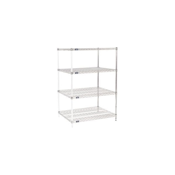 NEXEL® CHROME WIRE SHELVING ADD-ON - 36"W X 30"D X 63"H ADD-ON SHELVING UNITS ALLOW UNIT EXPANSION TO MAKE THE MOST OF STORAGE SPACE. INCLUDES 2 POSTS WITH LEVELING FEET, 4 SHELVES, SNAP-ON SLEEVES AND S-HOOKS TO JOIN UNITS. CHROME PLATED FINISH IS ATTRACTIVE ENOUGH FOR RETAIL DISPLAY, BUT WITHSTANDS WAREHOUSE CONDITIONS AS WELL. FEATURES