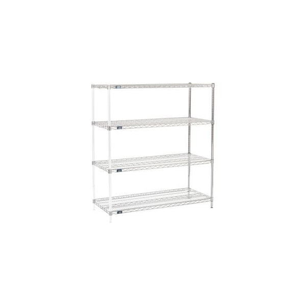 NEXEL® CHROME WIRE SHELVING ADD-ON - 48"W X 21"D X 63"H ADD-ON SHELVING UNITS ALLOW UNIT EXPANSION TO MAKE THE MOST OF STORAGE SPACE. INCLUDES 2 POSTS WITH LEVELING FEET, 4 SHELVES, SNAP-ON SLEEVES AND S-HOOKS TO JOIN UNITS. CHROME PLATED FINISH IS ATTRACTIVE ENOUGH FOR RETAIL DISPLAY, BUT WITHSTANDS WAREHOUSE CONDITIONS AS WELL. FEATURES