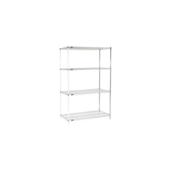 NEXEL® CHROME WIRE SHELVING ADD-ON - 48"W X 24"D X 86"H ADD-ON SHELVING UNITS ALLOW UNIT EXPANSION TO MAKE THE MOST OF STORAGE SPACE. INCLUDES 2 POSTS WITH LEVELING FEET, 4 SHELVES, SNAP-ON SLEEVES AND S-HOOKS TO JOIN UNITS. CHROME PLATED FINISH IS ATTRACTIVE ENOUGH FOR RETAIL DISPLAY, BUT WITHSTANDS WAREHOUSE CONDITIONS AS WELL. FEATURES: