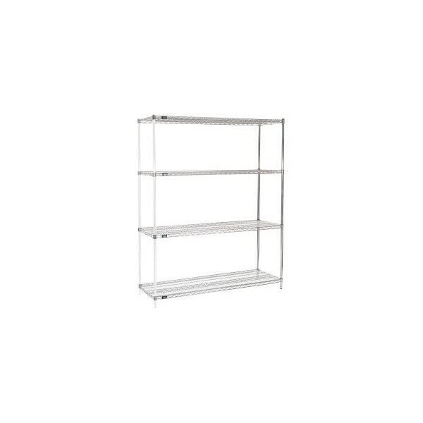 NEXEL® CHROME WIRE SHELVING ADD-ON - 60"W X 21"DX 74"H ADD-ON SHELVING UNITS ALLOW UNIT EXPANSION TO MAKE THE MOST OF STORAGE SPACE. INCLUDES 2 POSTS WITH LEVELING FEET, 4 SHELVES, SNAP-ON SLEEVES AND S-HOOKS TO JOIN UNITS. CHROME PLATED FINISH IS ATTRACTIVE ENOUGH FOR RETAIL DISPLAY, BUT WITHSTANDS WAREHOUSE CONDITIONS AS WELL. FEATURES: