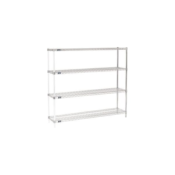 NEXEL® CHROME WIRE SHELVING ADD-ON - 72"W X 14"D X 54"H ADD-ON SHELVING UNITS ALLOW UNIT EXPANSION TO MAKE THE MOST OF STORAGE SPACE. INCLUDES 2 POSTS WITH LEVELING FEET, 4 SHELVES, SNAP-ON SLEEVES AND S-HOOKS TO JOIN UNITS. CHROME PLATED FINISH IS ATTRACTIVE ENOUGH FOR RETAIL DISPLAY, BUT WITHSTANDS WAREHOUSE CONDITIONS AS WELL. FEATURES: