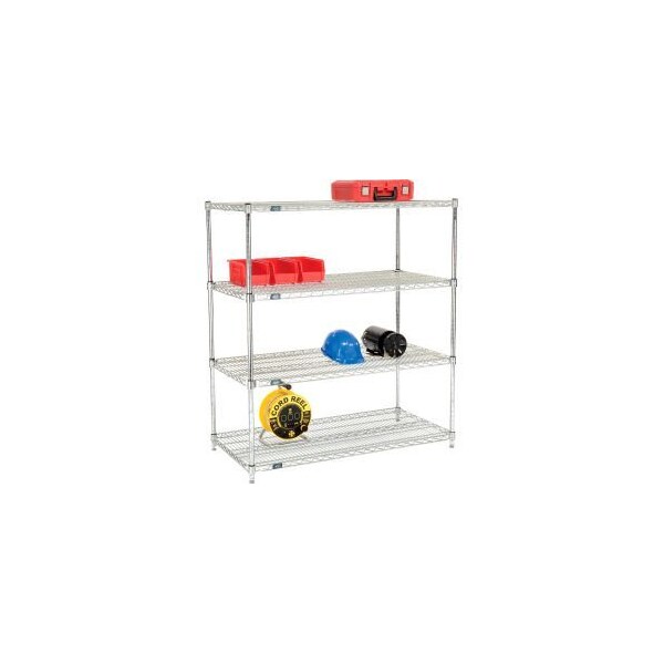 NEXEL® QUICK ADJUST POLY-Z-BRITE® SHELVING 48"W X 24"D X 54"H QUICK ADJUST WIRE SHELVING - POLY-Z-BRITE® OUR UNIQUE PATENTED QUICK ADJUST SUSPENSION HOOKS ALLOW MIDDLE SHELVES TO BE ADJUSTED, ADDED OR REMOVED WITHOUT DISASSEMBLY OR TOOLS. SHELVES SIMPLY LIFT OFF HOOKS AND REPLACE IN SECONDS. WIRE SHELVING BENEFITS INCLUDE MINIMAL DUST ACCUMULATION, EXCELLENT VISIBILITY AND LIGHT, SPRINKLER AND AIR PENETRATION. UNIT INCLUDES 4 POSTS, 2 FIXED 600 LB. CAPACITY SHELVES FOR TOP AND BOTTOM LEVELS, 2 QUICK ADJUST 400 LB. CAPACITY SHELVES AND 8 SUSPENSION HOOKS. ALL SHELVES ADJUST AT 1" INCREMENTS. CLEAR EPOXY "POLY-Z-BRITE®" FINISH INCLUDES A AGAINST RUST AND CORROSION. IT FEATURES NEX GARD® AN ANTI MICROBIAL AGENT THAT PROTECTS THE EPOXY COATING FROM GROWTH OF BACTERIA, MILDEW AND MOLDS. ADJUST IN AN INSTANT