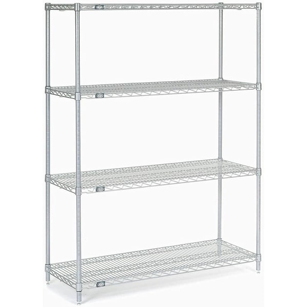 NEXEL® QUICK ADJUST POLY-Z-BRITE® SHELVING 60"W X 24"D X 54"H QUICK ADJUST WIRE SHELVING - POLY-Z-BRITE® OUR UNIQUE PATENTED QUICK ADJUST SUSPENSION HOOKS ALLOW MIDDLE SHELVES TO BE ADJUSTED, ADDED OR REMOVED WITHOUT DISASSEMBLY OR TOOLS. SHELVES SIMPLY LIFT OFF HOOKS AND REPLACE IN SECONDS. WIRE SHELVING BENEFITS INCLUDE MINIMAL DUST ACCUMULATION, EXCELLENT VISIBILITY AND LIGHT, SPRINKLER AND AIR PENETRATION. UNIT INCLUDES 4 POSTS, 2 FIXED 600 LB. CAPACITY SHELVES FOR TOP AND BOTTOM LEVELS, 2 QUICK ADJUST 400 LB. CAPACITY SHELVES AND 8 SUSPENSION HOOKS. ALL SHELVES ADJUST AT 1" INCREMENTS. CLEAR EPOXY "POLY-Z-BRITE®" FINISH INCLUDES A AGAINST RUST AND CORROSION. IT FEATURES NEX GARD® AN ANTI MICROBIAL AGENT THAT PROTECTS THE EPOXY COATING FROM GROWTH OF BACTERIA, MILDEW AND MOLDS. ADJUST IN AN INSTANT