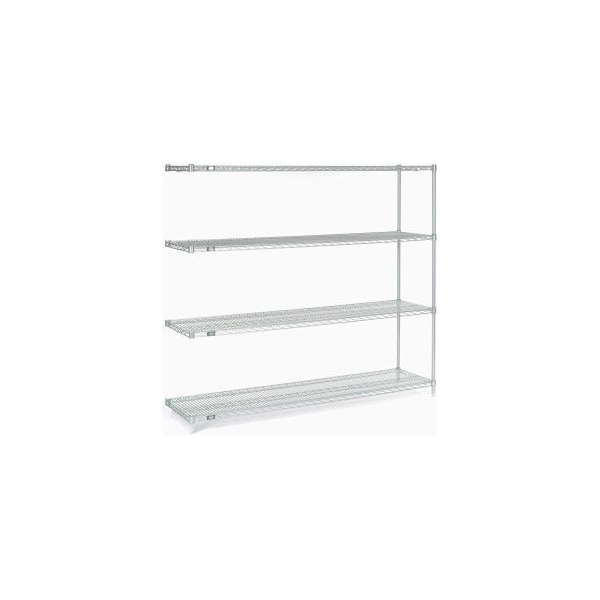 NEXELATE® SILVER EPOXY WIRE SHELVING ADD-ON 72"W X 18"D X 63"H ADD-ON SHELVING UNITS ALLOW UNIT EXPANSION TO MAKE THE MOST OF STORAGE SPACE. INCLUDES 2 POSTS WITH LEVELING FEET, 4 SHELVES, SNAP-ON SLEEVES AND S-HOOKS TO JOIN UNITS. NEXELATE® IS AN ATTRACTIVE FINISH THAT CONSISTS OF A SILVER EPOXY POWDER-COAT OVER A RUST INHIBITING UNDERCOAT. NSF APPROVED FOR WET OR DRY USE. FEATURES: