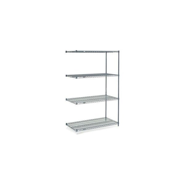 NEXELON® WIRE SHELVING ADD-ON, 30"W X 14"D X 86"H ADD-ON SHELVING UNITS ALLOW UNIT EXPANSION TO MAKE THE MOST OF STORAGE SPACE. INCLUDES 2 POSTS WITH LEVELING FEET, 4 SHELVES, SNAP-ON SLEEVES AND S-HOOKS TO JOIN UNITS. NEXELON® IS THE TOP OF THE LINE BLUE METALLIC FINISH DESIGNED TO HANDLE EXTREME WET, HOT OR COLD ENVIRONMENTS. NEX GARD ®, AN ANTI-MICROBIAL AGENT, PROTECTS THE EPOXY COATING FROM BACTERIA, MOLD, AND MILDEW THAT CAUSES ODORS AND PRODUCT DEGRADATION. FEATURES: