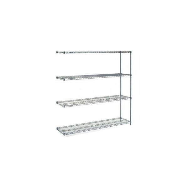 NEXELON® WIRE SHELVING ADD-ON, 60"W X 21"D X 54"H ADD-ON SHELVING UNITS ALLOW UNIT EXPANSION TO MAKE THE MOST OF STORAGE SPACE. INCLUDES 2 POSTS WITH LEVELING FEET, 4 SHELVES, SNAP-ON SLEEVES AND S-HOOKS TO JOIN UNITS. NEXELON® IS THE TOP OF THE LINE BLUE METALLIC FINISH DESIGNED TO HANDLE EXTREME WET, HOT OR COLD ENVIRONMENTS. NEX GARD ®, AN ANTI-MICROBIAL AGENT, PROTECTS THE EPOXY COATING FROM BACTERIA, MOLD, AND MILDEW THAT CAUSES ODORS AND PRODUCT DEGRADATION. FEATURES: