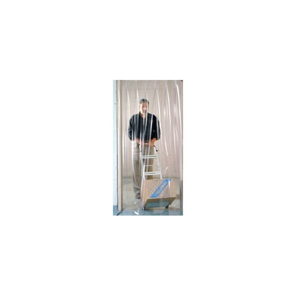 PEDESTRIAN STRIP DOOR CURTAIN FASTEST INSTALLATION OF ANY STRIP DOOR ON THE MARKET!! EXCLUSIVE GLASS FILLED POLYPROPYLENE MOUNTING BRACKETS (INCLUDED) REDUCE STRIP CURTAIN INSTALLATION TIME BY 90%. PRE-PUNCHED STRIPS SIMPLY HOOK ON AND WILL NOT ACCIDENTALLY COME OFF. 8" WIDE X 0.08" THICK STRIPS HAVE A 50% OVERLAP MAKING THEM IDEAL FOR PASSAGEWAYS AND OUTDOOR ENTRANCES WHERE TEMPERATURE (TEMPERATURE RESISTANT FROM -10 TO +150 DEGREES F), NOISE AND/OR DUST CONTROL IS NECESSARY. FIRE-RESISTANT, AS WELL AS SELF-EXTINGUISHING, AND REGISTERED AS SUCH BY THE CALIFORNIA STATE FIRE MARSHAL'S OFFICE. NOTE: W' X H' SIZE SHOWN IS FOR RECESSED MOUNTED (UNDER HEADER) DOORS. FOR SURFACE MOUNTED (ON WALL) DOORS, ORDER STRIP DOOR 1 FOOT WIDER AND HIGHER THAN DOOR OPENING.