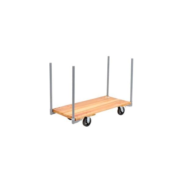 STAKE HANDLE HARDWOOD DECK PLATFORM TRUCK 48 X 24 2000 LB. CAPACITY 6" RUBBER CASTERS - 241702 SUPERIOR PERFORMANCE AT AFFORDABLE PRICES. FLUSH 7/8" THICK, KILN-DRIED AND SEALED DECK IS REINFORCED WITH CROSS BATTENS FOR LONG LIFE. STAKE HANDLE MODELS COME COMPLETE WITH FOUR 30"H REMOVABLE PIPE STAKES. ROLL SMOOTHLY ON 2 SWIVEL, 2 RIGID CASTERS.