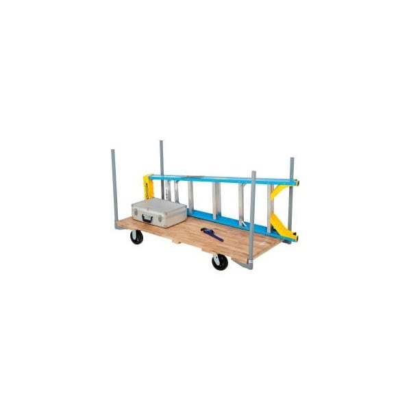 STAKE HANDLE HARDWOOD DECK PLATFORM TRUCK 60 X 30 2000 LB. CAPACITY 6" RUBBER CASTERS - 241704 SUPERIOR PERFORMANCE AT AFFORDABLE PRICES. FLUSH 7/8" THICK, KILN-DRIED AND SEALED DECK IS REINFORCED WITH CROSS BATTENS FOR LONG LIFE. STAKE HANDLE MODELS COME COMPLETE WITH FOUR 30"H REMOVABLE PIPE STAKES. ROLL SMOOTHLY ON 2 SWIVEL, 2 RIGID CASTERS.