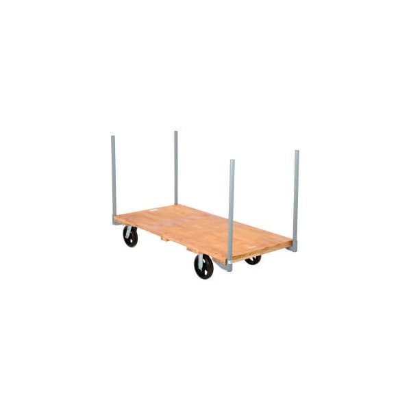 STAKE HANDLE HARDWOOD DECK PLATFORM TRUCK 60 X 30 2400 LB. CAPACITY 8" RUBBER CASTERS - 952512 SUPERIOR PERFORMANCE AT AFFORDABLE PRICES. FLUSH 7/8" THICK, KILN-DRIED AND SEALED DECK IS REINFORCED WITH CROSS BATTENS FOR LONG LIFE. STAKE HANDLE MODELS COME COMPLETE WITH FOUR 30"H REMOVABLE PIPE STAKES. ROLL SMOOTHLY ON 2 SWIVEL, 2 RIGID CASTERS.