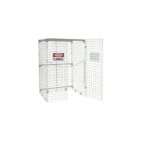 VERTICAL STORAGE CAGE FOR 9" CYLINDERS 20 CYLINDER CAPACITY PROTECT CYLINDERS FROM TAMPERING AND UNAUTHORIZED USE. STORE CYLINDERS INDOORS OR OUT IN THESE RUGGEDLY BUILT UNITS. CONSTRUCTED OF HEAVY-DUTY 3" SQUARE X 1/4" THICK WIRE MESH, THIS CAGE OFFERS FULL VENTILATION, STRENGTH AND RIGIDITY. ALL CABINETS FEATURE DOUBLE DOORS FOR EASY ACCESS AND 2 HIGHLY VISIBLE "DANGER FLAMMABLE" SIGNS. ALL STYLES EXCEED OSHA 1910.110 REQUIREMENTS AND NFPA STANDARDS. PADLOCKABLE HINGED DOOR ACCEPTS AN OPTIONAL PADLOCK FOR SECURITY. FLOOR ANCHORING HARDWARE IS INCLUDED. CORROSION RESISTANT GRAY EPOXY FINISH. 1 COMPARTMENT PROVIDING 20 CYLINDER CAPACITY. EASY ASSEMBLY.