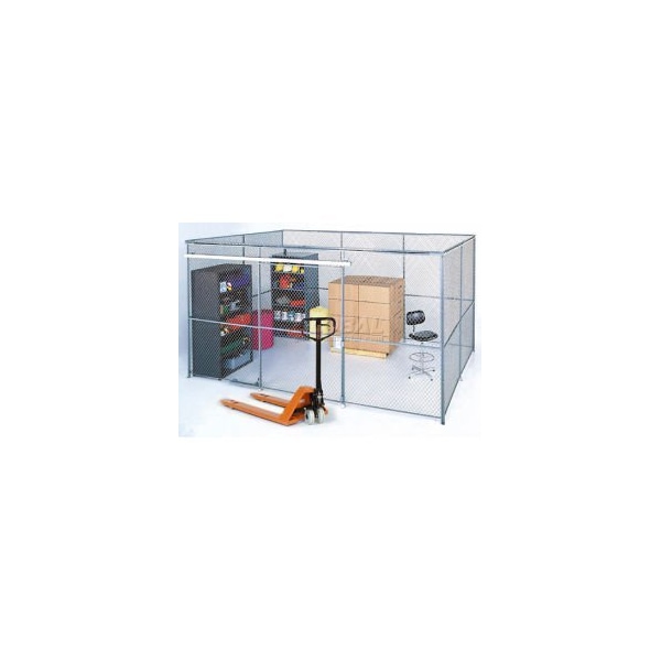 LOW COST SECURITY ROOM - BOLTED WIRE MESH 10' HIGH ROOM WITH 2 SIDES - WITH ROOF. CONVENIENT AND EASY TO ORDER WE'VE ASSEMBLED A COMPLETE SET OF COMPONENTS FOR YOU SO THAT YOU CAN PURCHASE A COMPLETE WIRE MESH PARTITION SECURITY ROOM. THE LOW COST WAY TO PROTECT YOUR MERCHANDISE AND VALUABLES. EASY TO INSTALL, MOVE OR RELOCATE. PERFECT FOR STOCK ROOMS, TOOL CRIBS AND SECURITY AREAS. STURDY WIRE MESH ROOF OFFERS ADDITIONAL SECURITY. BOLTED WIRE MESH PARTITIONS HAVE EXTRA-STRONG C-CHANNEL FRAME AND 10 GAUGE WOVEN WIRE - CLINCHED, NOT WELDED, INTO FRAME - FOR HEAVY-DUTY STRENGTH AND ENHANCED APPEARANCE. A 5'W X 8'H SLIDING GATE IS INCLUDED (WITH A 2’H FILL TRANSOM). THIS GATE FEATURES BALL-BEARING SUSPENSION AND AN ENCLOSED STURDY TRACK KIT TO PREVENT MISALIGNMENT. THE FOLLOWING HARDWARE IS INCLUDED: MORTISE LOCK FOR GATE, TOP CAPPING, CHANNEL STIFFENER POSTS, CORNER POSTS, FLOOR SOCKETS, WALL CLIPS, NUTS, BOLTS AND DETAILED ASSEMBLY INSTRUCTIONS. GRAY POWDER COAT FINISH. IF THE OPTIONAL WINDOW IS REQUIRED, PLEASE ADD AN "A" SUFFIX TO THE MODEL NUMBER WHEN ORDERING. ADDITIONAL COST APPLIES.