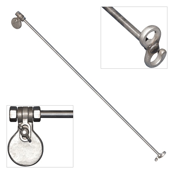 The Non Tangle Rod is constructed of 3/8 inch diameter stainless steel, for wall mounted outrigger flagpoles. The rod measures 48 inch long (for flag size 5 foot x 8 foot), supplied with one stainless steel fitting which attaches to the bottom edge of the flag. Note: A reinforcing patch must be sewn into the flag in order for the flag clamp to properly attach.