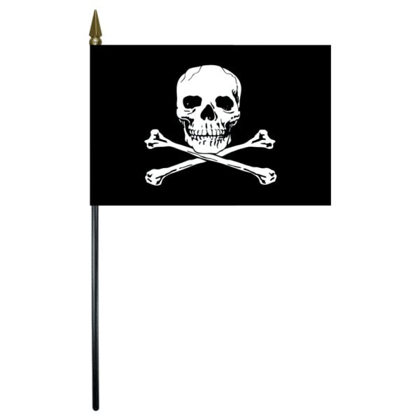Beautifully printed on silk-like Endura-GlossTM and Endura-PolyTM material, stick flags are carefully hem-stitched on all four sides and mounted on a staff with spear. The pirate flag, also known as the Jolly Roger or the Skull & Crossbones, was flown by pirates to induce fear and panic in the ships they attacked.