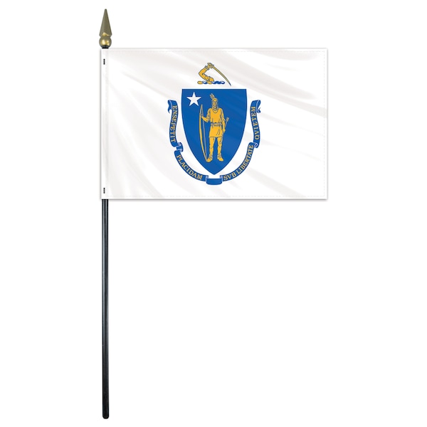 Massachusetts Stick Flag 4"x6" E Gloss