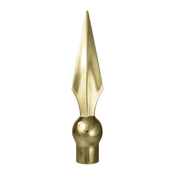 The brass plated Gold Metal Flat Spear Ornament is a great addition to any indoor flagpole. Select hardware options to accommodate various types of flagpoles. How to Choose Ornament Hardware: