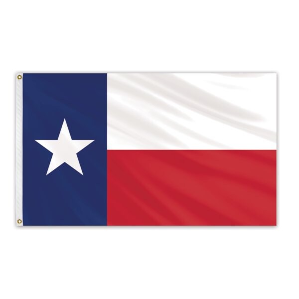 The Texas Outdoor Nylon Fly Bright Flag is made with high quality 190-denier nylon material, which is expertly crafted and specially treated to resist sun and chemical deterioration. This soft and silky material flies in the slightest breeze, offering quality and value. Durable and fast drying, this nylon fly bright flag is ideal for outdoor use. This 3’ x 5’ flag is finished with a canvas header and brass grommets for easy installation. The flag of the state of Texas, also known as “The Lone Star Flag”, features a blue vertical stripe containing a single centered white star. The field of the flag is divided horizontally into a white and red bar.
