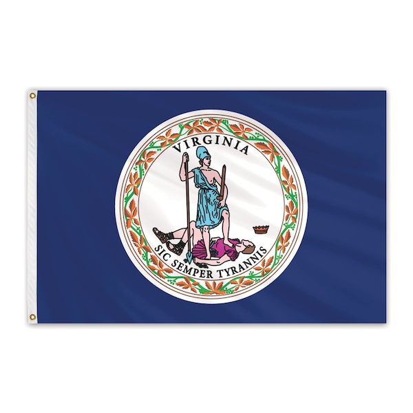 Unsurpassed in beauty and craftsmanship, these nylon outdoor flags are manufactured to precise specifications. Expertly crafted using 100% heavyweight, 200-denier nylon bunting, and treated to resist sun and chemical deterioration. Extremely durable and fast drying, nylon flags are the most popular choice for outdoor flags. All nylon flags are finished with a strong, durable snow-white header and brass grommets. The flag of the state of Virginia features the state seal on an azure field. This flag was adopted on February 1st, 1950.