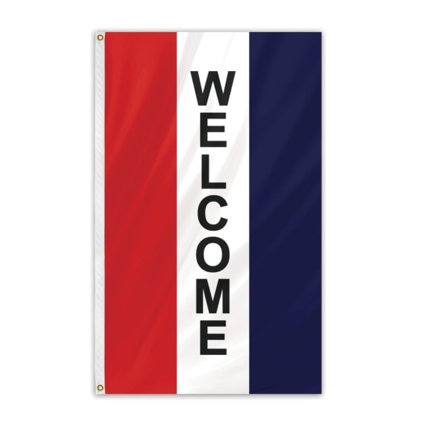 Vertical Message Flags are one of the best ways to accelerate your business; they're easy to set up, contain a simple but clear message, and best of all, they do the work for you. All of our message flags are made of high-quality nylon and stitched to perfection. They're also UV resistant, so you won't have to worry about flying it every day. \n \nThe vertical aspect ratio is really eye-catching, mix in a few along with your standard horizontal flags for a stunningly attractive look.