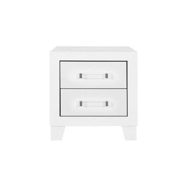 Elevate your bedside with the Luccia 2-Drawer Nightstand, a masterpiece of modern design and functionality. The crisp white finish is seamlessly complemented by the lustrous acrylic drawer pulls, making a statement of luxury in your bedroom retreat. Each drawer glides smoothly, providing ample space for your nighttime essentials. This nightstand is not only a convenient storage solution but also a sophisticated accent piece that enhances the overall aesthetic of your sleeping quarters.