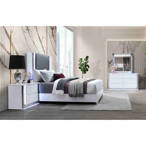 Modern High Gloss Ylime Smooth White Queen Bed Group